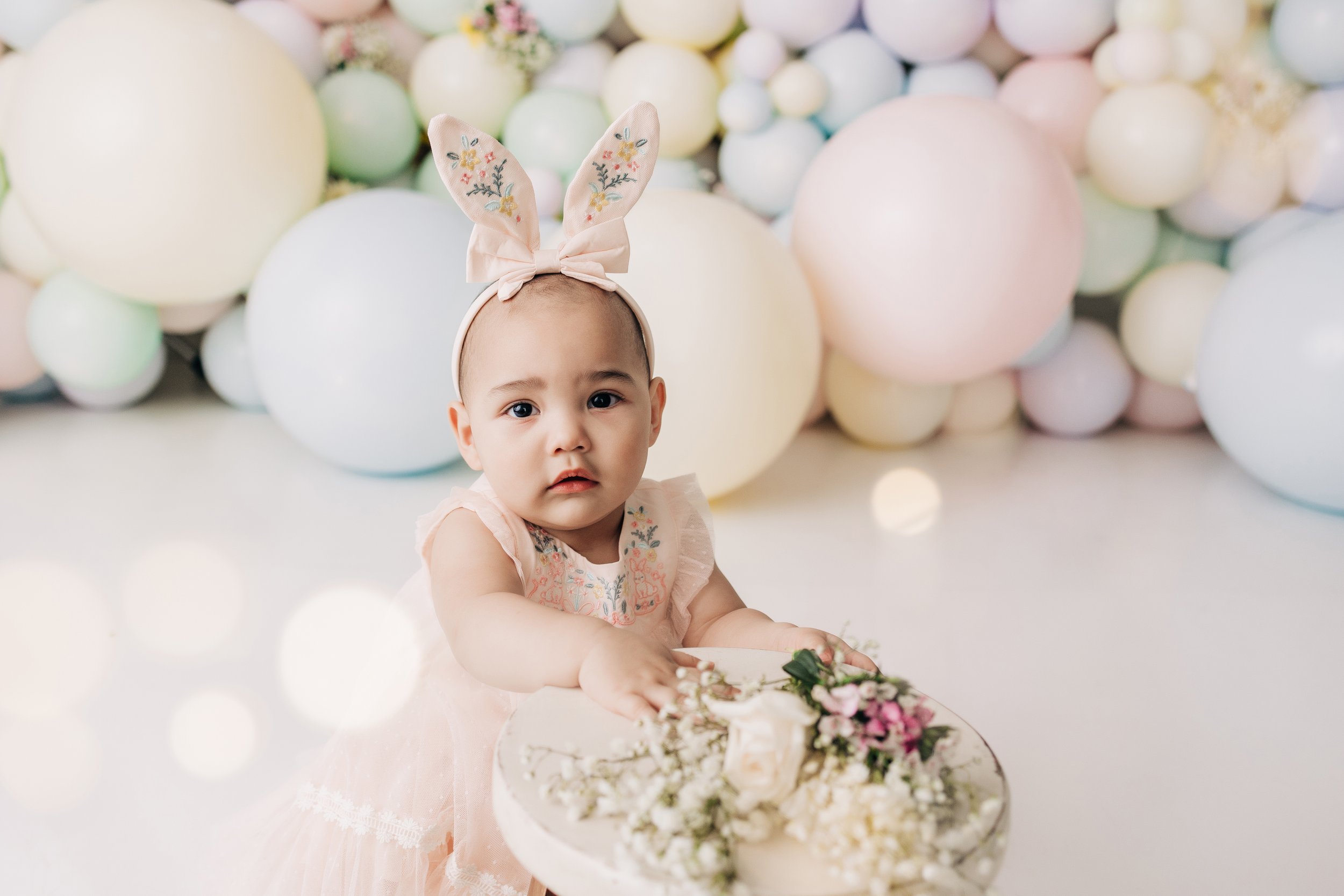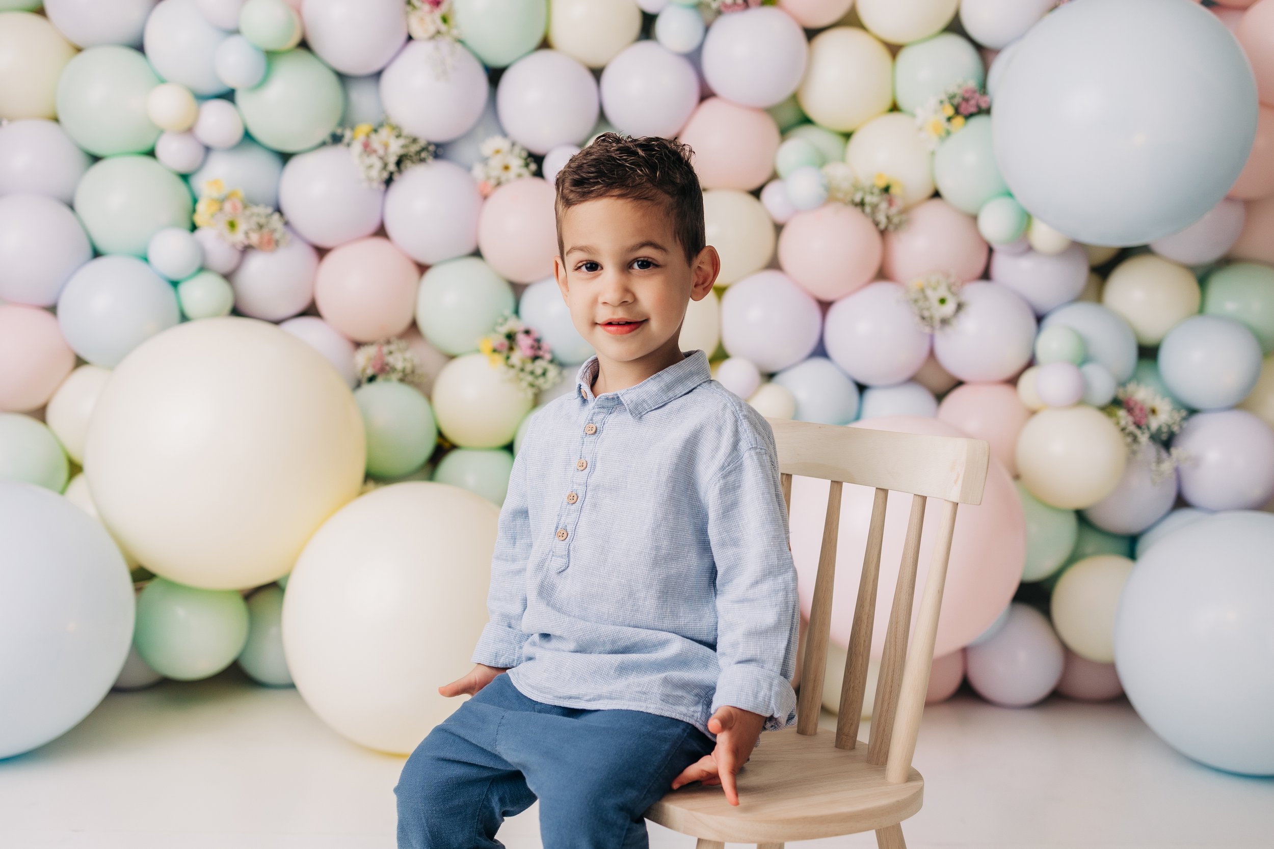 As a photographer, I've always believed in the power of a backdrop to transform a photograph. It's not just about the subjects I capture; it's about the story the entire frame tells. The pastel balloon wall, with its soft colors and gentle floral accents, brought a dreamy, ethereal quality to each photo. The way the light played off the balloons, the subtle nuances of the different pastel shades, and the organic incorporation of flowers created a setting that was both dynamic and deeply connected to the essence of spring.